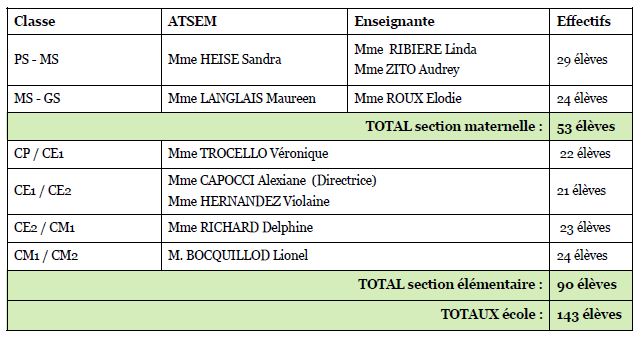 EQUIPE PÉDAGOGIQUE ET EFFECTIFS DES CLASSES